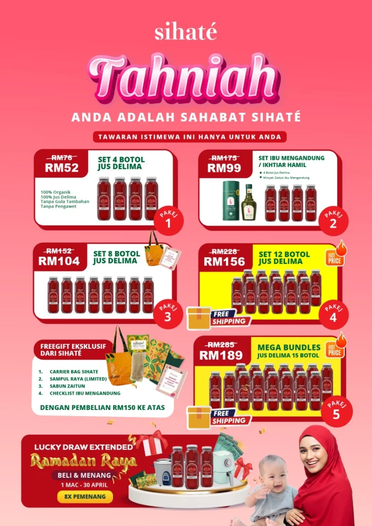 FREE 1 BOTOL JUS DELIMA, OLIVE OIL 10ML & WOVEN BAG!